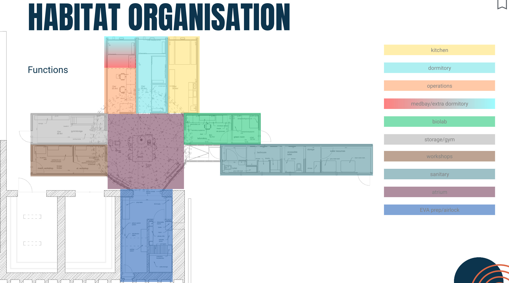 A further container that houses an additional two sleeping pods, medbay and operations